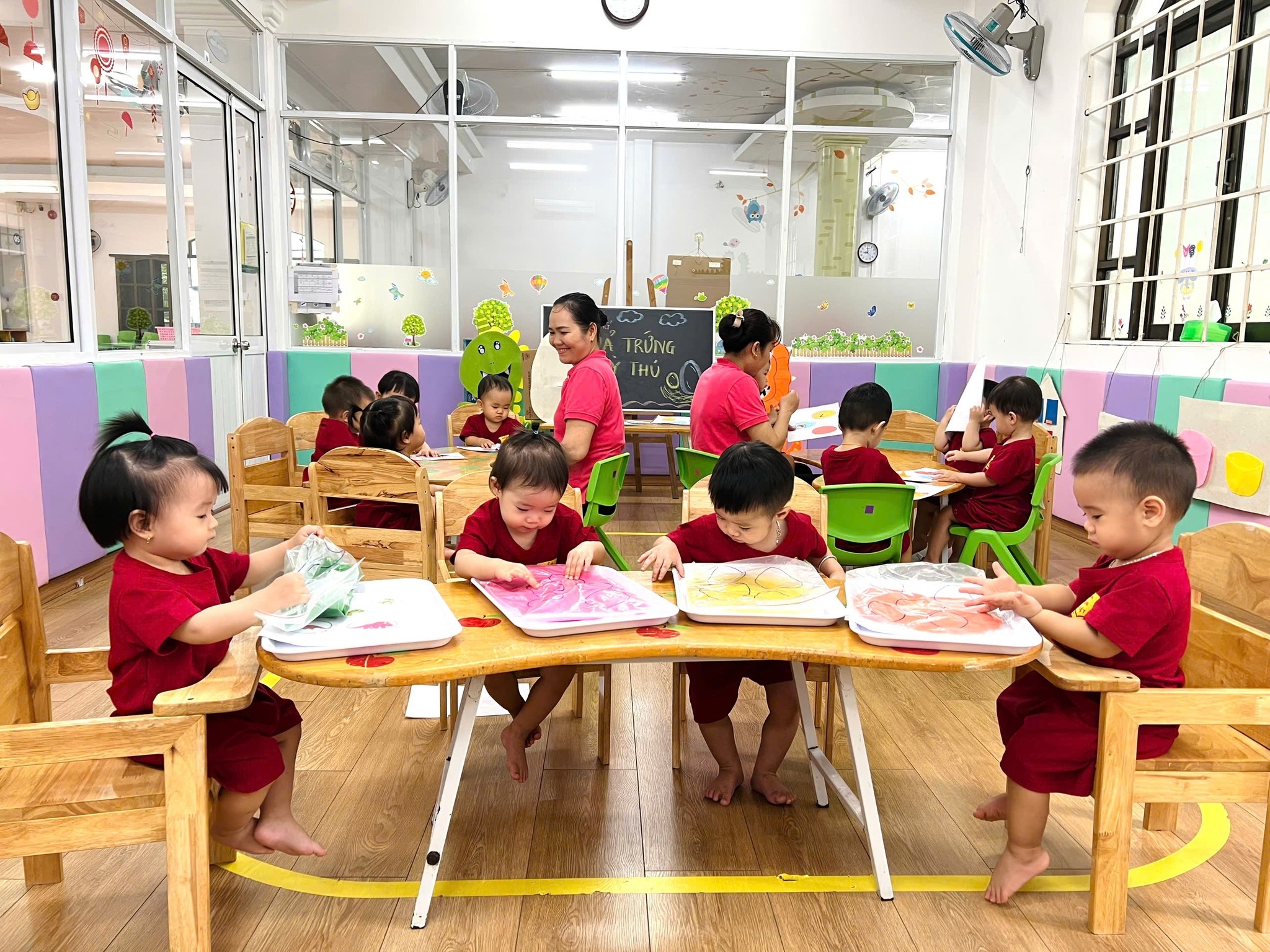 Với diện tích sử dụng hơn 3,000m2, tất cả các phòng học tập, phòng chức năng, phòng ăn, sân chơi, hồ bơi, nhà bếp… đều được thiết kế theo đúng tiêu chuẩn dành cho học sinh mầm non và chú trọng đặc biệt đến sự an toàn cho trẻ.